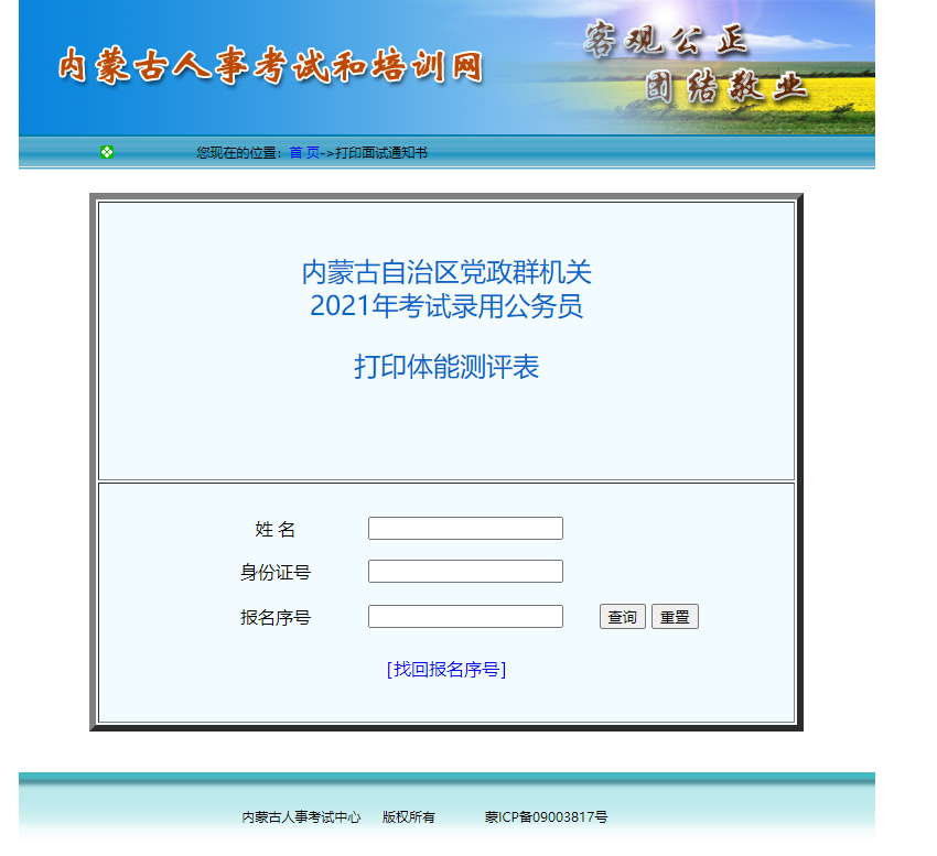 內(nèi)蒙古自治區(qū)黨政群機關(guān)2021年度考試錄用公務(wù)員考試打印體能測評表的通知