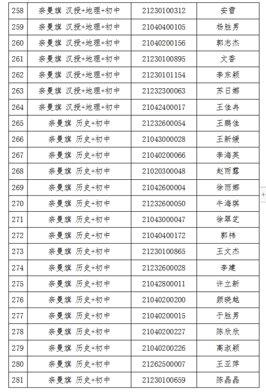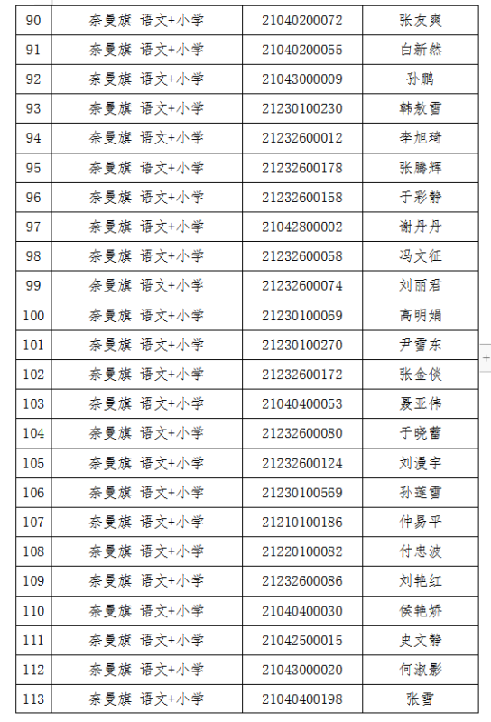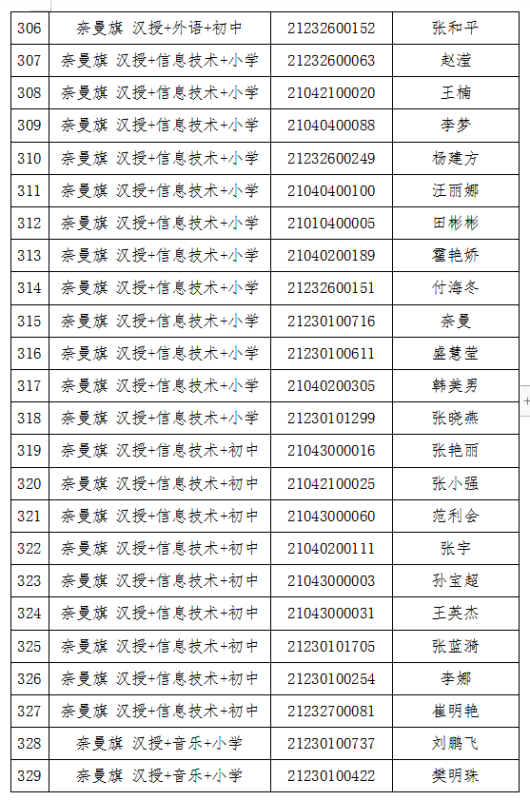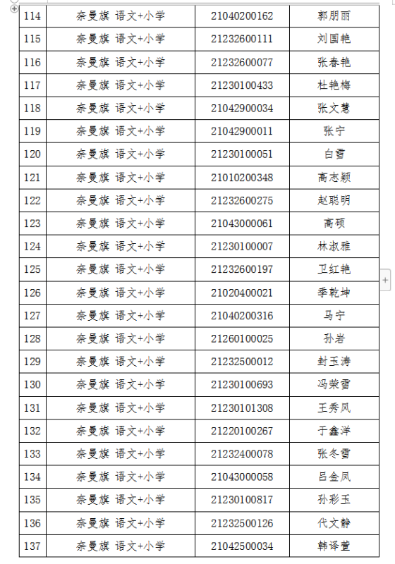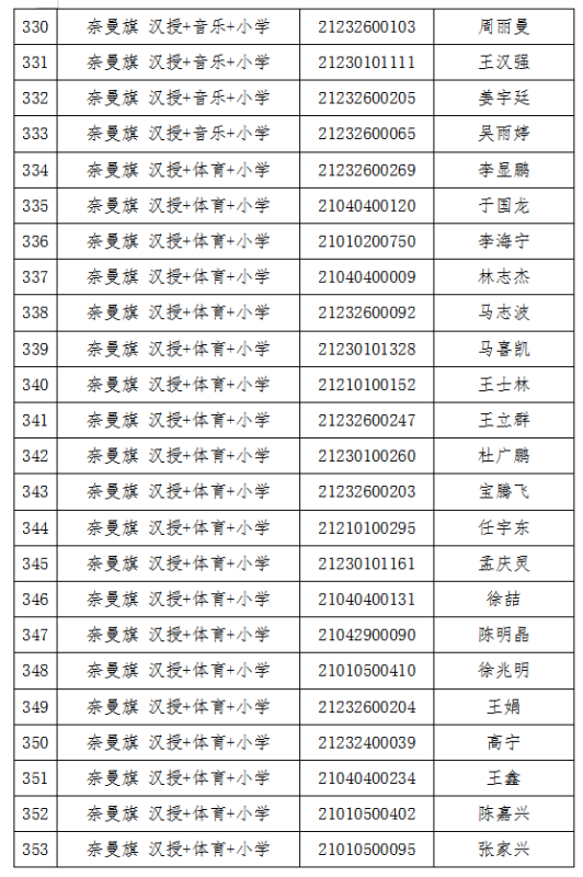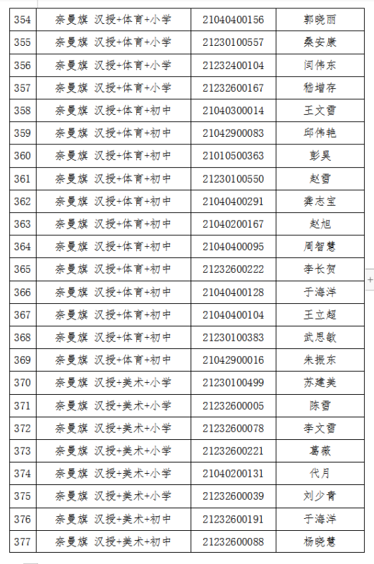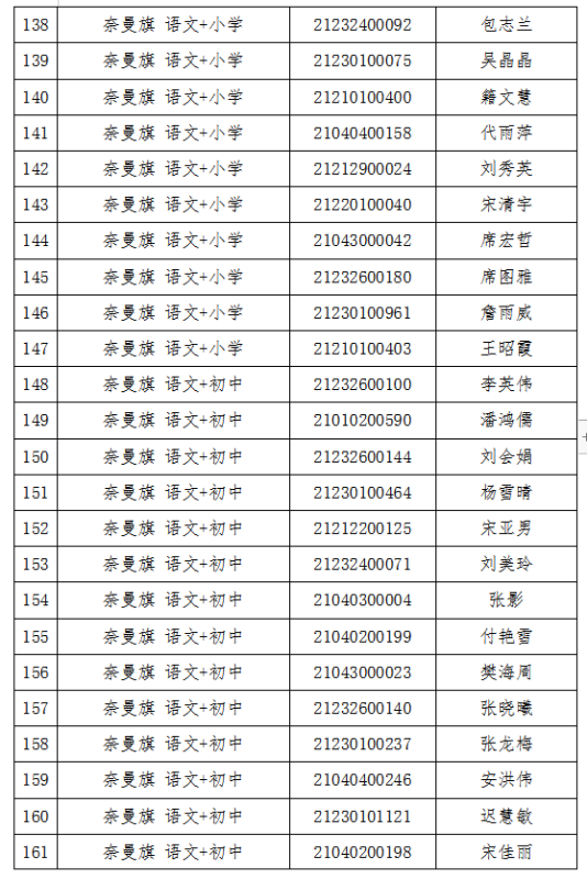 附件:2021年內(nèi)蒙古自治區(qū)農(nóng)村牧區(qū)義務教育階段學校特設崗位計劃(奈曼旗崗位)進入資格復審人員名單