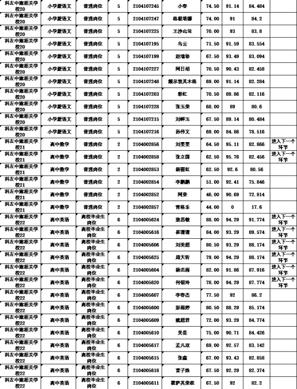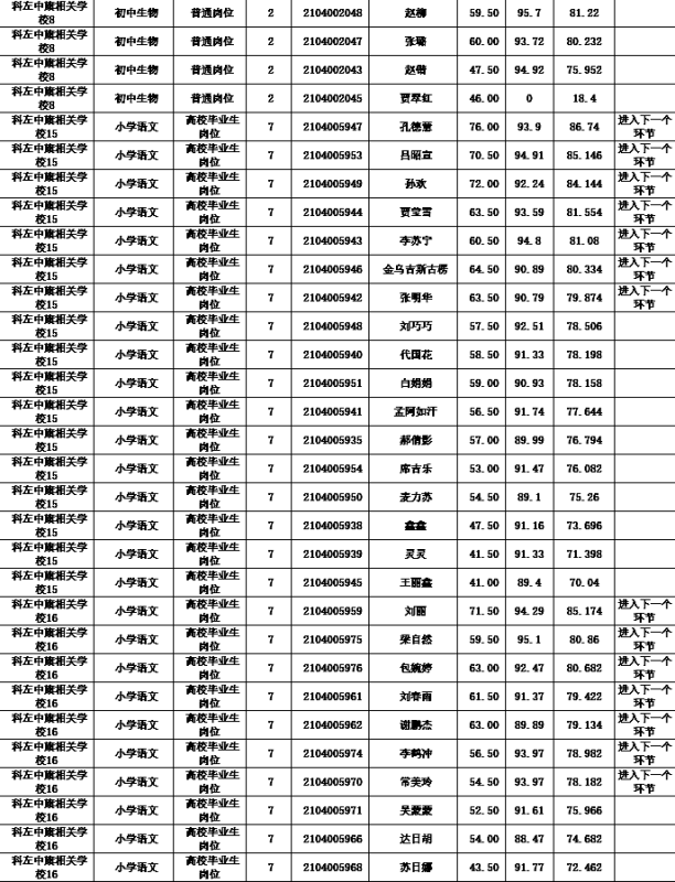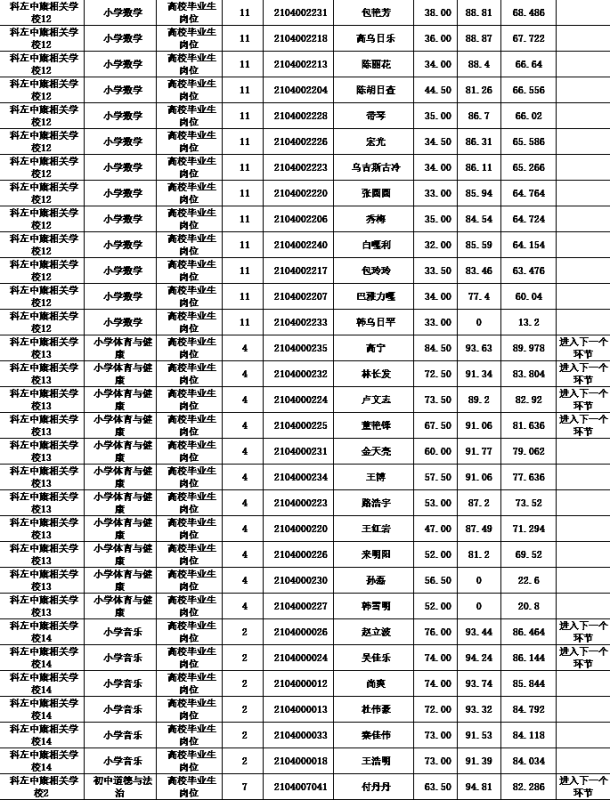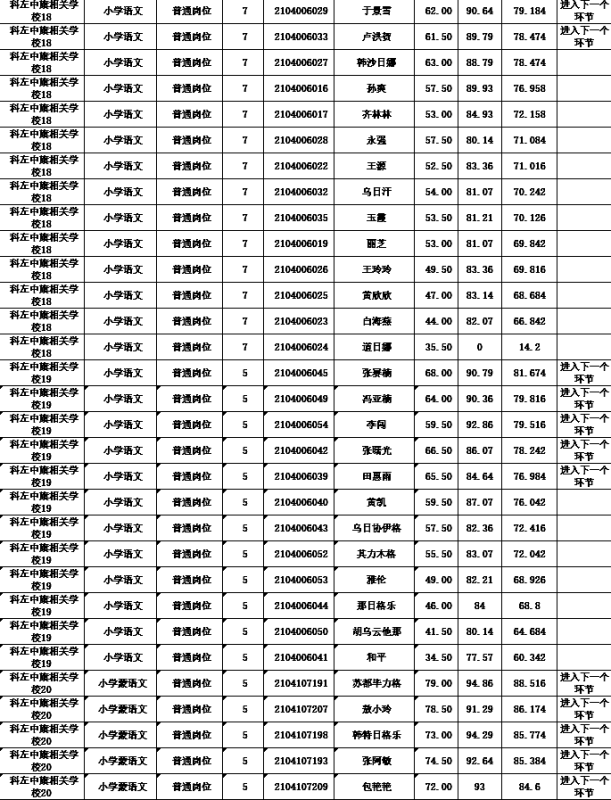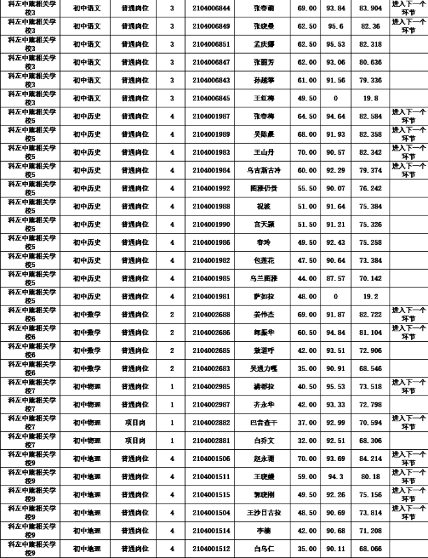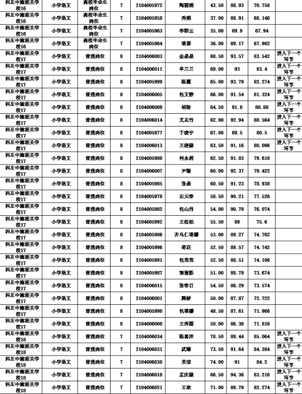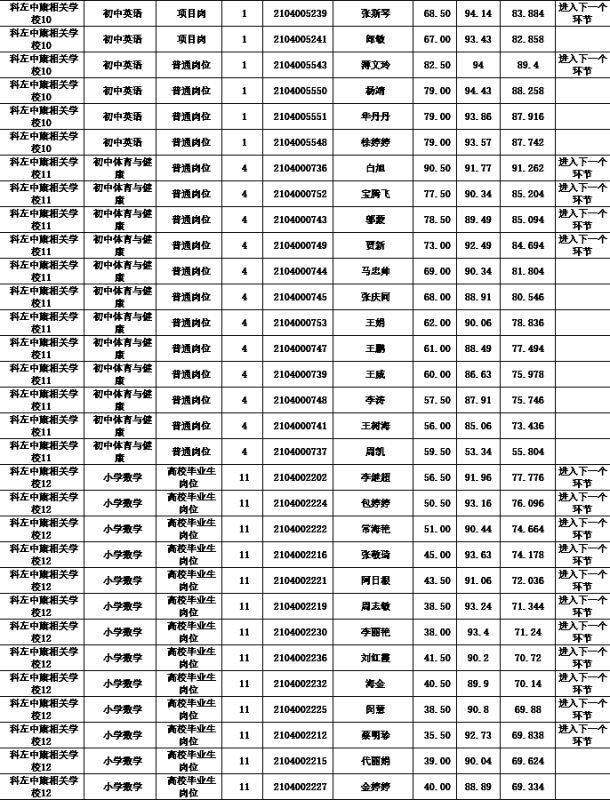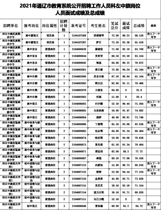 【成績公示】2021年通遼市教育系統(tǒng)公開招聘工作人員科左中旗崗位人員面試成績及總成績的公告