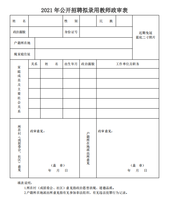 3.居住地所在社區(qū)(村委會(huì))、戶籍所在地或居住地轄區(qū)派出所出具的無違法違紀(jì)證明材料,出具部門填寫意見并簽字蓋章。(請(qǐng)待考察人員下載《關(guān)于協(xié)助進(jìn)行2021年通遼市教育系統(tǒng)公開招聘工作人員開魯縣崗位人員考察工作的函》及《政審表》)