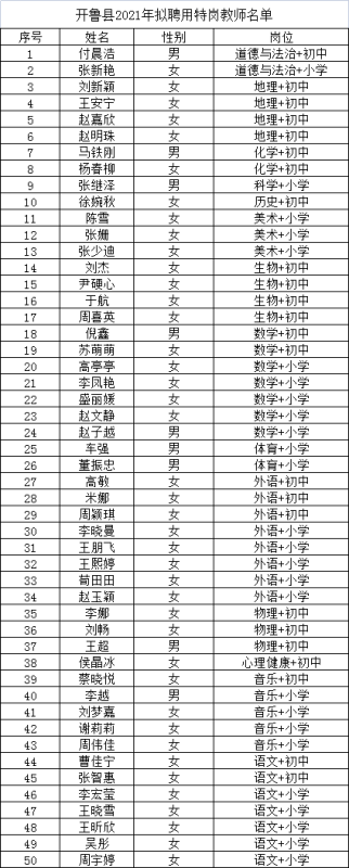 根據(jù)自治區(qū)教育廳、財(cái)政廳、人力資源和社會(huì)保障廳、編辦《關(guān)于做好2021年內(nèi)蒙古自治區(qū)農(nóng)村牧區(qū)義務(wù)教育階段學(xué)校教師特設(shè)崗位計(jì)劃實(shí)施工作通知》(內(nèi)教教師字[2021]23號(hào))相關(guān)要求,經(jīng)過筆試、資格復(fù)審、面試、體檢等環(huán)節(jié),現(xiàn)對2021年內(nèi)蒙古自治區(qū)農(nóng)村牧區(qū)義務(wù)教育階段學(xué)校特設(shè)崗位(開魯縣崗位)擬聘用人員進(jìn)行考察,現(xiàn)將考察事宜公告如下: