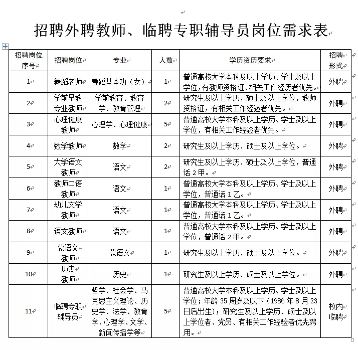 附件:招聘外聘教師、臨聘專職輔導(dǎo)員崗位需求表