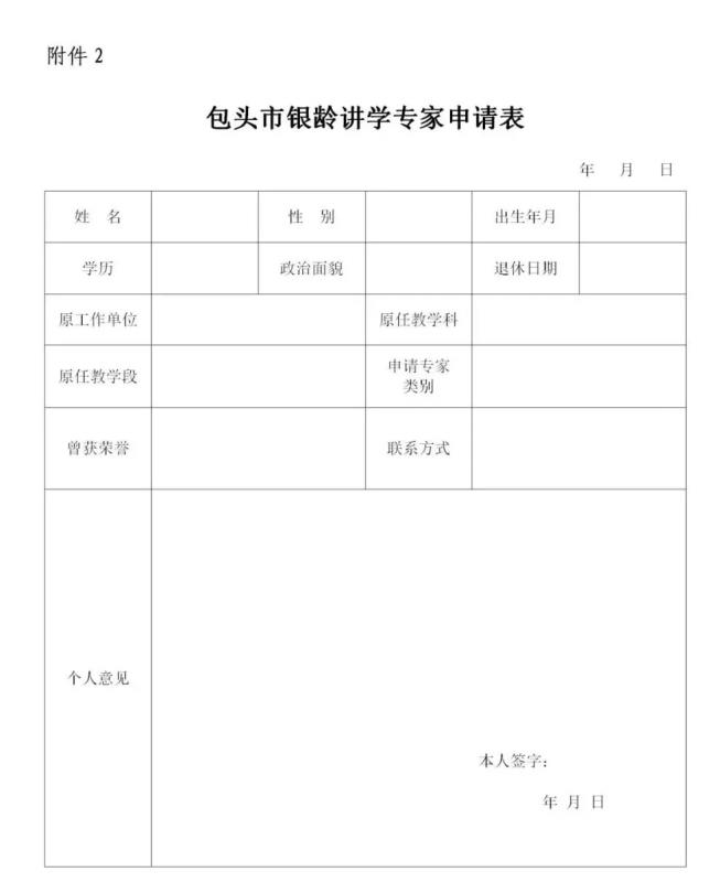 請意愿參加銀齡講學(xué)的退休教師,參照《包頭市2021-2022學(xué)年銀齡講學(xué)計(jì)劃需求表》(見附件1),填寫包頭市銀齡講學(xué)專家申請表(見附件2),經(jīng)本人簽字后于2021年10月28日前報(bào)市教育局教師工作科401室。