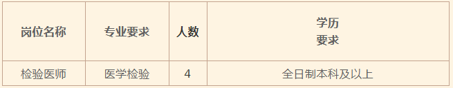 烏海市海勃灣區(qū)中醫(yī)醫(yī)院根據(jù)人員需求,現(xiàn)面向社會(huì)公開(kāi)招聘醫(yī)學(xué)檢驗(yàn)人員4名,具體招聘方案公告如下: