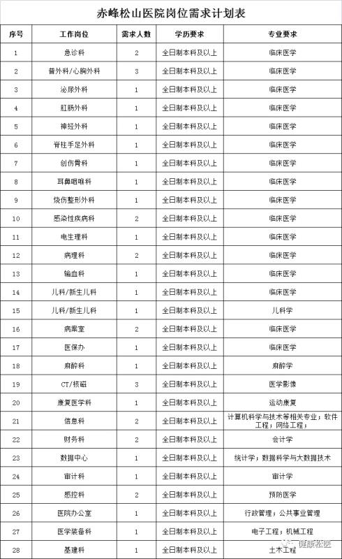 根據(jù)赤峰松山醫(yī)院業(yè)務(wù)發(fā)展需要,經(jīng)赤峰市松山區(qū)編辦、松山區(qū)人社局、松山區(qū)衛(wèi)生健康委員會(huì)同意面向高校擇優(yōu)招聘全日制本科及以上學(xué)歷畢業(yè)生。現(xiàn)將具體事宜公告如下: